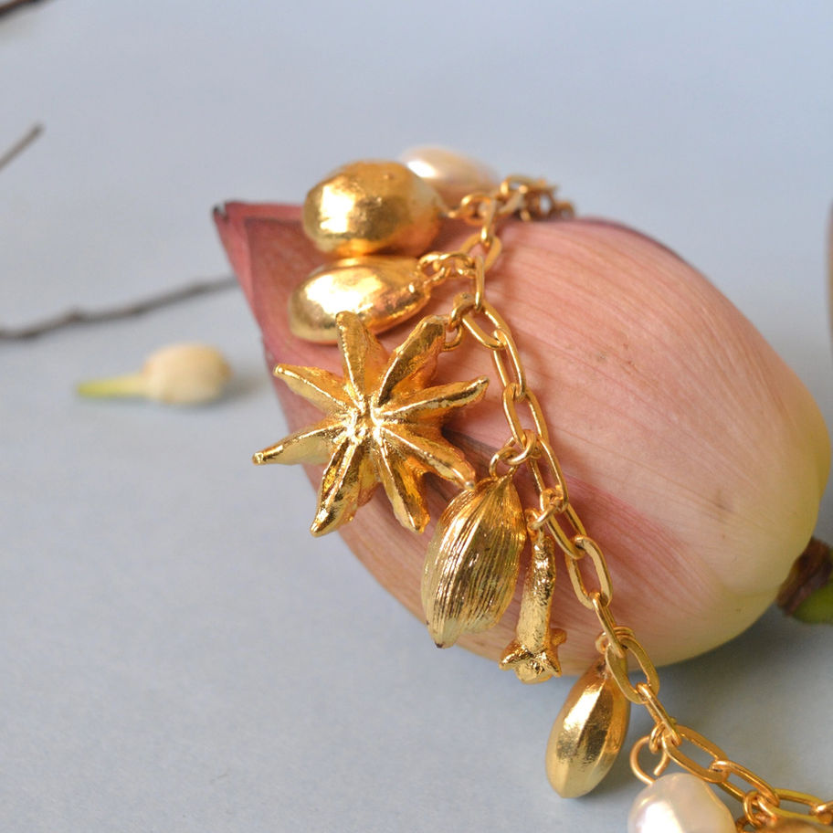 • A bunch of hanging assorted seeds and spices hanging around the wrist makes it a modern heirloom that is truly and uniquely your own.